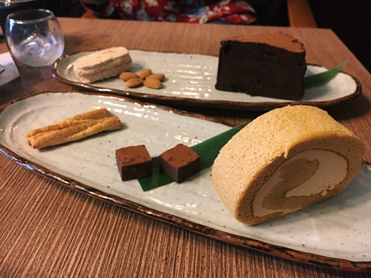 下面是青田洋菓子套餐(350元)。鹽之花焦糖牛奶卷。焦糖味裡帶點為酸,不是我喜歡的味道,不過卻很對友人的味。中間的凍生巧克力讓人心花怒放,雖說前有個凍子,但入口即緩緩化去,醇滑如綢,非常喜歡。