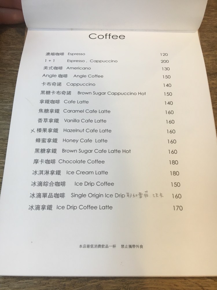 這間是 Angle(角),不是 Angle(天使),不要搞錯啦。咖啡店靠近公園,簡單工業風,小小一間店,大片落地窗使得下午採光非常好,晚上則是人流少,較為安靜。店裡的咖啡豆都是自家烘培。