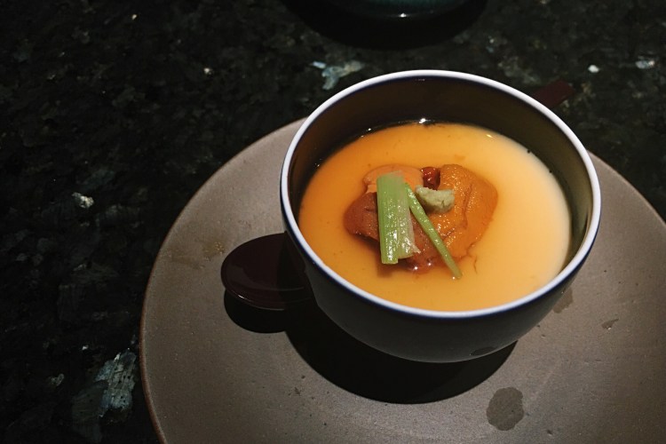 豪華海膽茶碗蒸(260元)。小小一碗茶碗蒸,蒸蛋平滑沒有氣孔,毫無腥味,搭上鮮甜海膽十分美味。