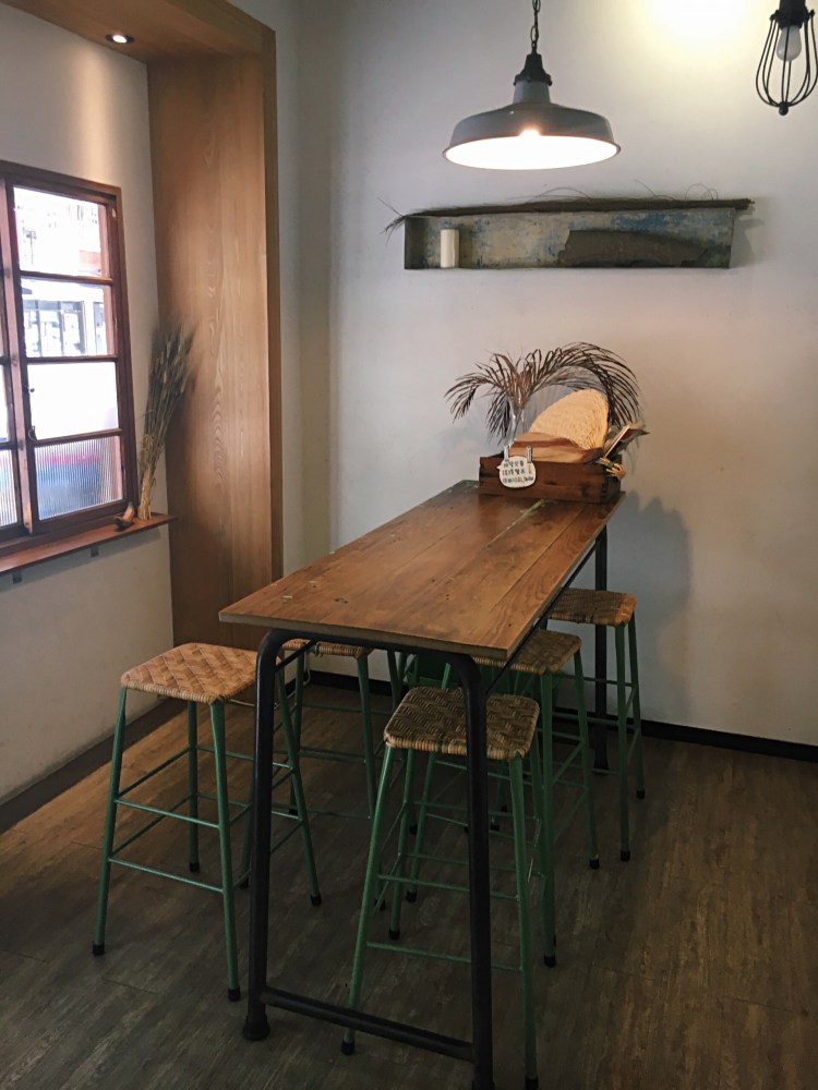 店面不大,只有一張長桌,還有靠窗的狹窄吧台。