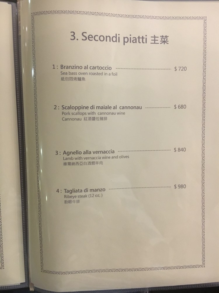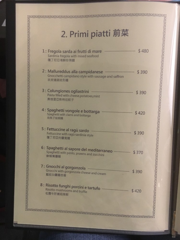 若想試試不一樣的,他們也有一人1500元的滿漢全席薩丁尼亞特色套餐(最少需要兩個人)。