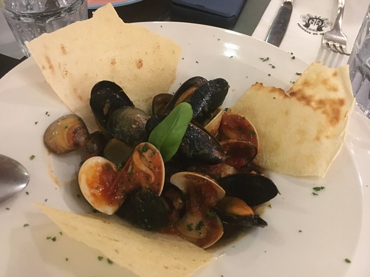 跳躍的貝殼 Guazzetto di vongole e cozze(380元)。名字很活撥的一道菜,主要就是淡菜與蛤蜊,挺新鮮的,一下就被分完了。