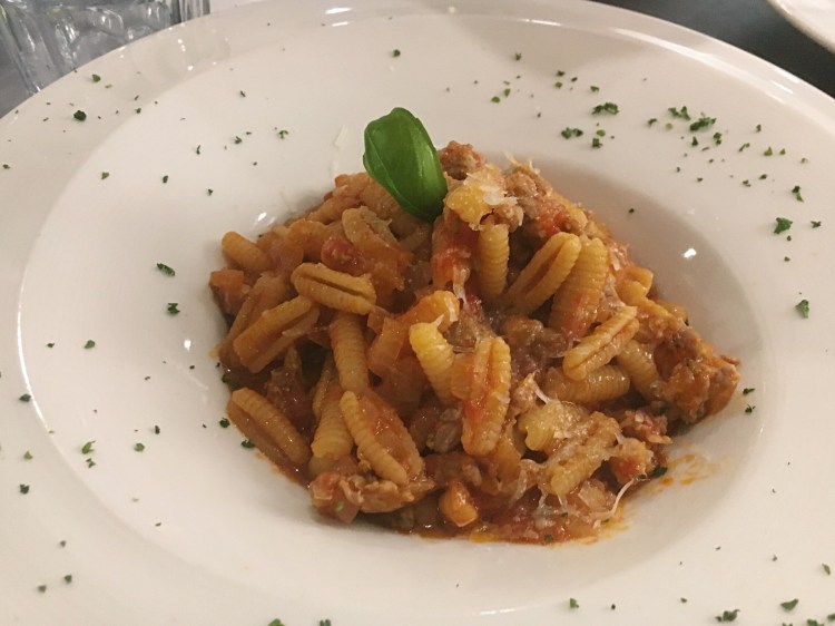 坎皮達諾紋形麵 Malloreddus alla Campidanese(390元)。紋形麵是薩丁尼亞特有的麵食之一,坎皮達諾紋形麵更是當地一道經典菜色。麵的形狀使醬汁很容易就被抓住,每口都吃得到醬汁香。