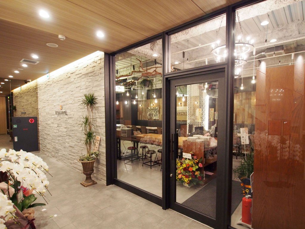 顯眼明亮的門面讓人一眼就能看到。不過站到旅館前時我們還是困惑了一下,不知道哪個是入口,暗色大門太低調啦。