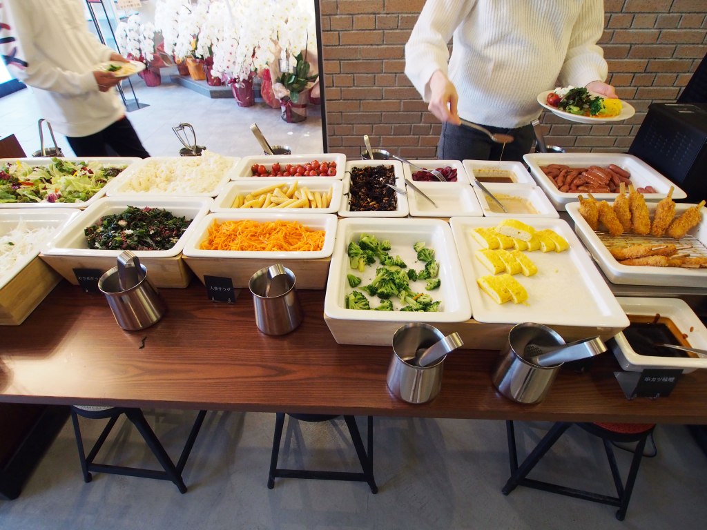 沙拉、麵包、白飯、味噌湯、玉子燒、香腸等等等,甚至還有炸物。食物都有一定水準,能讓人元氣滿滿的開始新的一天。