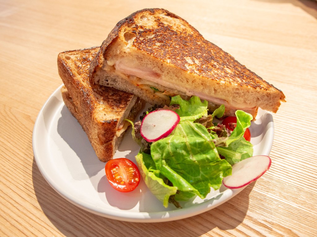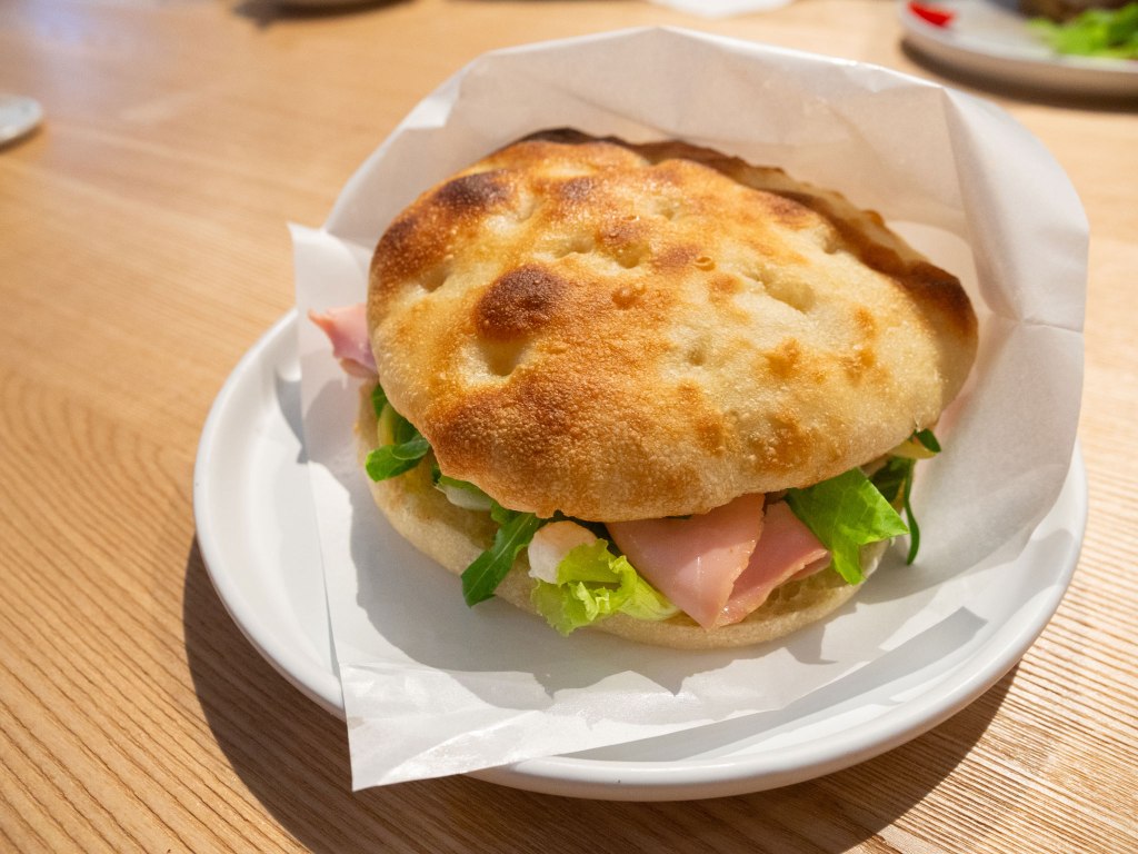 冷三明治,麵包體佛卡夏比較油潤一點,內裡是火腿、起司和芝麻葉等,也是簡單美味。