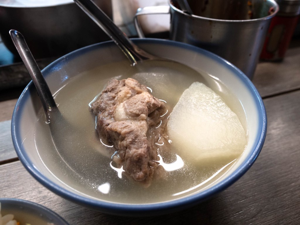 湯體清爽,但不寡淡。蘿蔔清甜,將柔嫩排骨蘸上辣椒醬油,很是不錯。