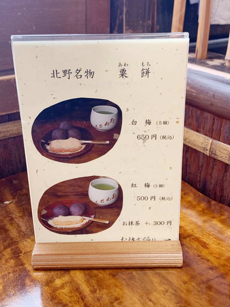品項很簡單,只有白梅與紅梅兩種。兩樣都會附茶,加300円可換抹茶。